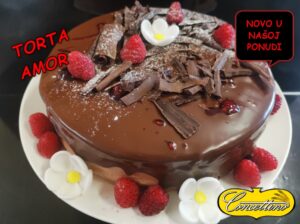 Torta Amor, savršena slatko kiselkasta kombinacija svježih malina i čokolade .